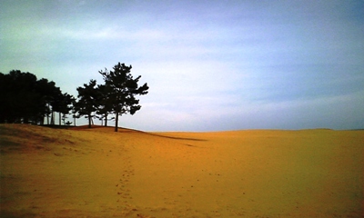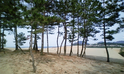 西側の文芸広場から入り砂丘を歩き出しましたが、あまりにも風が強く、砂が凄い勢いで舞い上がっていたため、そそくさと松林の中に非難してしまいました(^^;